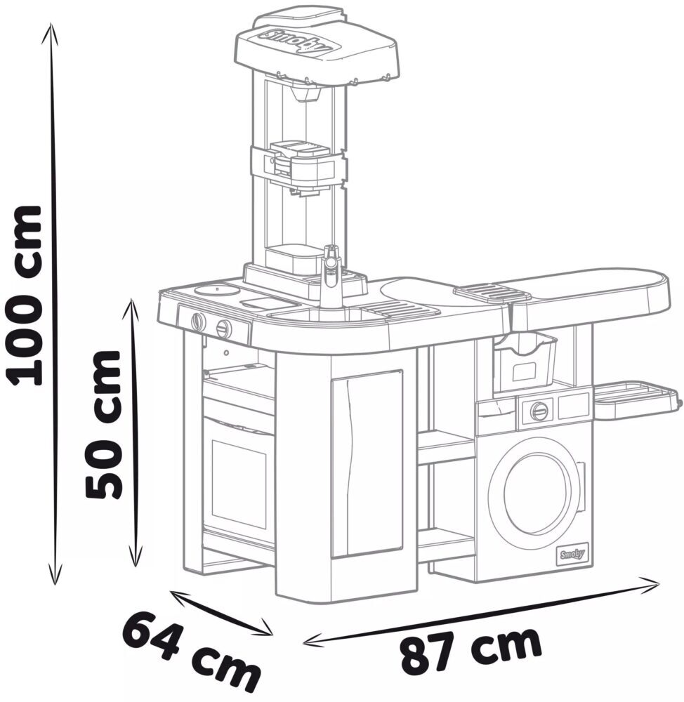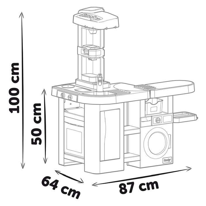 Kuhinja ima sudoper, slavinu, pećnicu, hladnjak, napu, aparat za espresso, sok aparat, ploču za kuhanje sa zvučnim efektima.