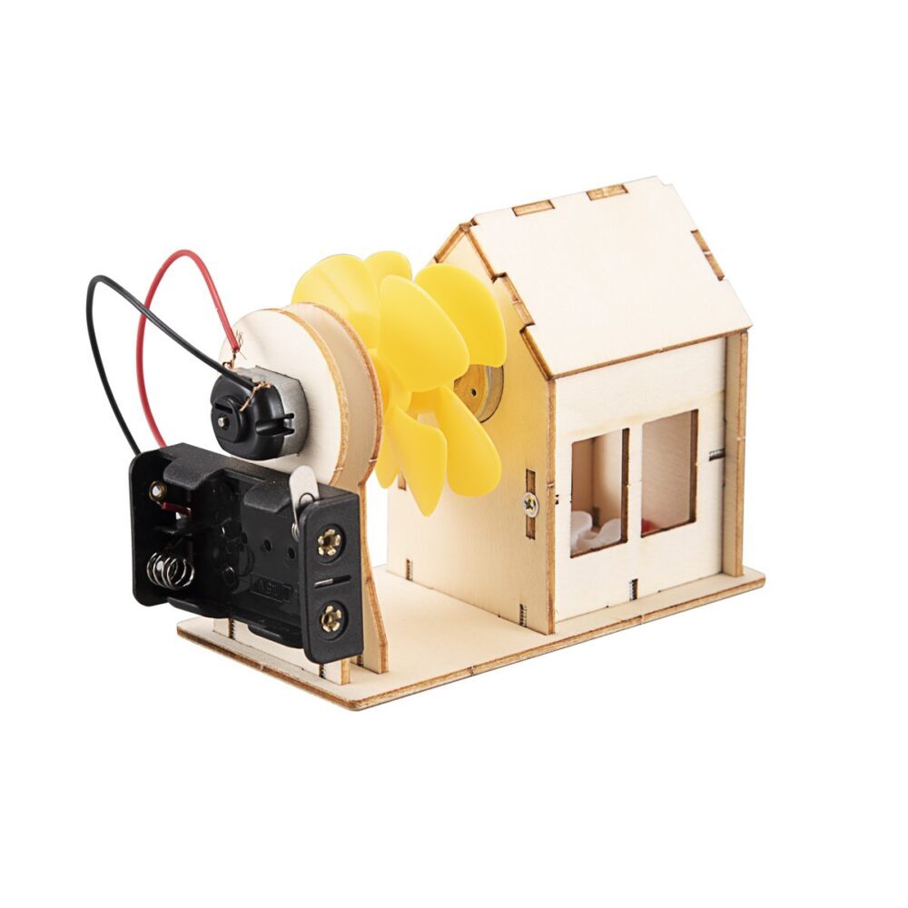 Izazovna aktivnost gradnje i slaganja seta vjetroelektrane koja zahtjeva koncentraciju i logičko razmišljanje. Ovi modeli uče djecu osnovama fizike na zabavan i zanimljiv način. Model vjetroelektrane uči principe generiranja snage vjetra te njeguje i poboljšava praktične sposobnosti. Princip zračne turbine – lopatice ventilatora od generatora se okreću kao "odgovor" na strujanje zraka – inicirajući rotaciju koja pokreće generator da proizvodi struju. Kad se postigne određena brzina, električna energija napaja LED žaruljice koje svijetle.