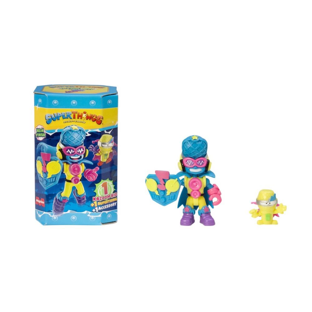 Predstavljamo Superthings egzoskeletone – naoružane figure s pokretnim rukama! Rezultat tehnoloških eksperimenata profesora K, prožeti su neonskom snagom ColorFlash-a i sada su još nezaustavljiviji. Heroji i zlikovci, SuperThings i Kazoom Kids udružili su se s njima ‒ i bitka će biti luđa nego ikada. Sakupi 6 modela i pronađi zlatni egzoskelet!