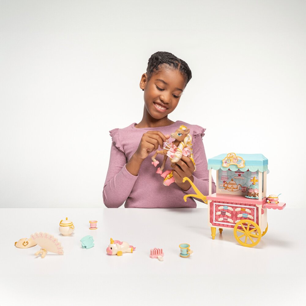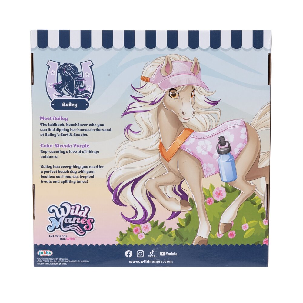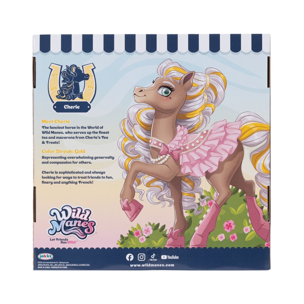 Wild Manes je linija igračaka i animirana serija koja prikazuje svijet šarenih konjića s jedinstvenim stilovima, smještenih u maštovito okruženje zvano Mane Street. Igračke dolaze s pokretnim dućanima i dodacima za igru uloga, a likovi poput Cherie, Bailey i Zoey poznati su po osebujnim frizurama i željom za zabavnim avanturama. Epizode serije dostupne su na službenom YouTube kanalu. Ovaj sortni artikl nudi tri različita seta konjića – Cocoa, Bailey i Cherie – od kojih svaka dolazi s vlastitim tematskim kolicima i dodacima za igru. Cocoa poslužuje tople napitke i slastice iz svog kafića na kotačima, Bailey donosi ljetne vibracije uz tropski kiosk Bubbles and Beaches, a Cherie poziva na elegantnu čajanku sa stilom. Svaki set sadrži 17 dodataka i figuru konja s nekoliko pomičnih točki koja se može postaviti u razne poze za dinamičnu i maštovitu igru. Set sadrži 1x figura konja, dodaci za igru. Preporučena dob: 3+.