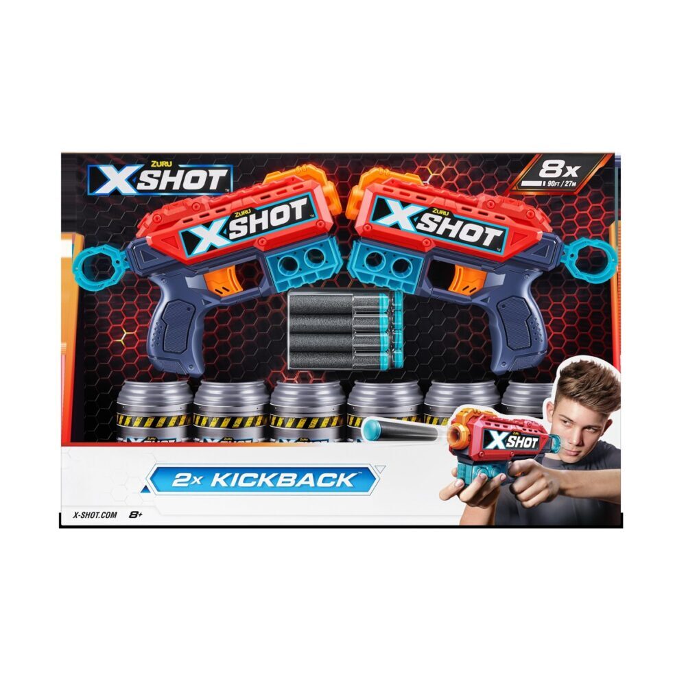 - Set sadrži: 2 x X-Shot Excel Kickback ispaljivača, 6 x plastičnih limenki, 8 x X-Shot strelica od pjene