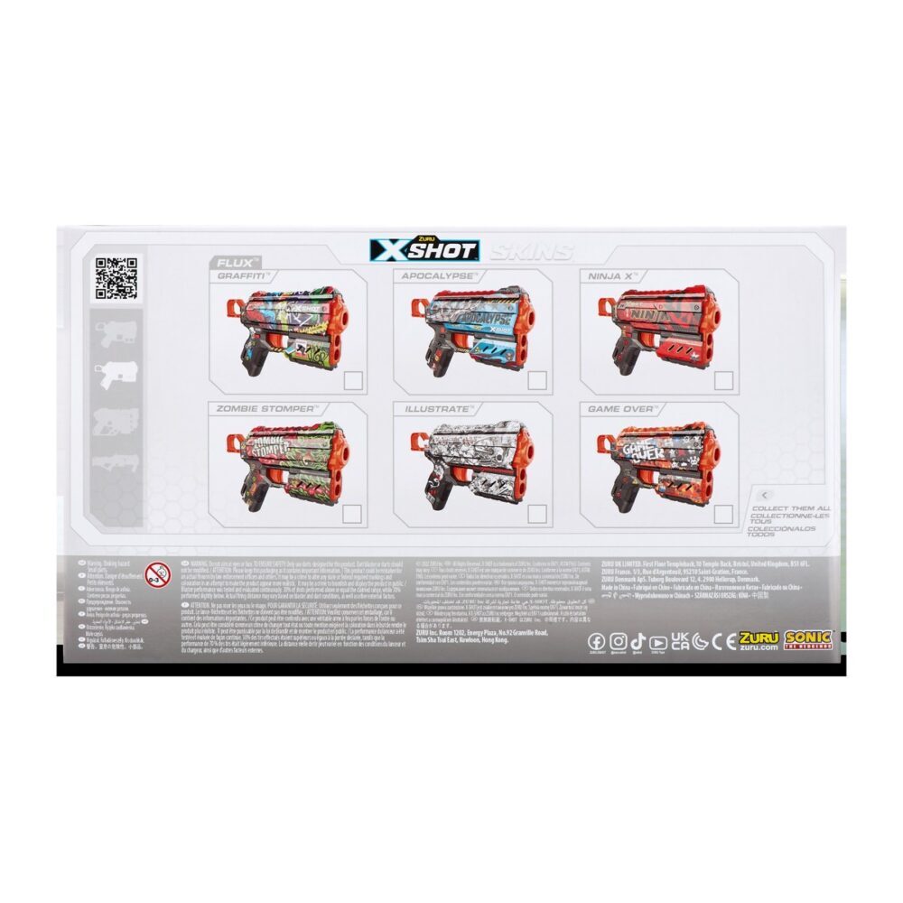 Odaberite izgled svog X-Shota! X-Shot Skins je prvi blaster kod kojega sami birate dizajn. X-Shot Skins Flux dolazi u 6 jedinstvenih skinova za odabir i prikupljanje (svaki se prodaje zasebno). Odaberite drugačije, odaberite X-Shot skinove.