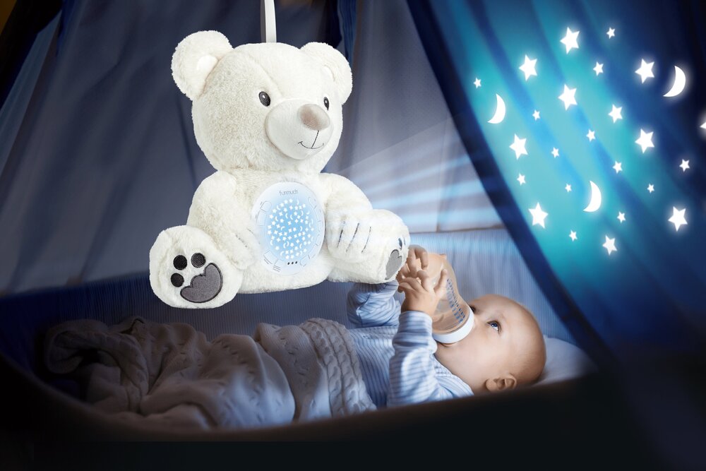 Moonlight Buddiezzz su jedini plišanci za bebu koji će vam zaista trebati! Ovi medeni plišanci dizajnirani su kako bi svojom pojavom i nježnim izgledom umirili bebu, a tehničke mogućnosti uređaja koji je ugrađen u trbuščić igračke pomoći će i najtežim slučajevima nervoze zbog kolika ili izbijanja zubića. Uređaj reproducira deset umirujućih melodija uspavanki, a s mogućnošću odabira pet razina glasnoće uvijek ćete moći reprodukciju prilagoditi potrebama vaše bebe. Uređaj emitira bijeli šum, među mamama omiljen zvuk koji bebe vole, a pomaže pri zatomljavanju vanjskih ometajućih zvukova. Uz pomoć mjerača vremena možete podesiti duljiu reprodukcije uređaja prema svojim potrebama, a dodatnu draž ovoj lijepoj plišanoj igrački daje i LED svjetlo koje svojim blagim radom pridonosi umirujućim osjećajima. Uređaj ima i opciju prikaza zvjezdanog neba koje će dodatno ukrasiti ionako lijepu atmosferu oko bebine kolijevke. Ova plišana igračka iznimno se lako održava – jednostavno izvadite uređaj iz trbuščića igračke te operite plišani dio kako bi uvijek bio potpuno higijenski prikladan za vaše najmanje. Igračke su dizajnirane u nekoliko primamljivih životinjskih likova, visine oko 30 cm. Za ispravan rad uređaja potrebne su 3x AAA baterije (nisu uključene uz proizvod). Preporučena dob: 0+.